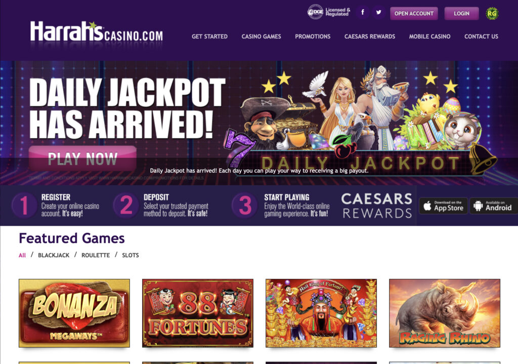 3. Harrah’s Casino Online – 20 free spins (Promo code required), 4x Playthrough